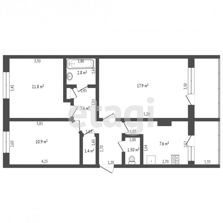 3-комн. кв., 80 м2