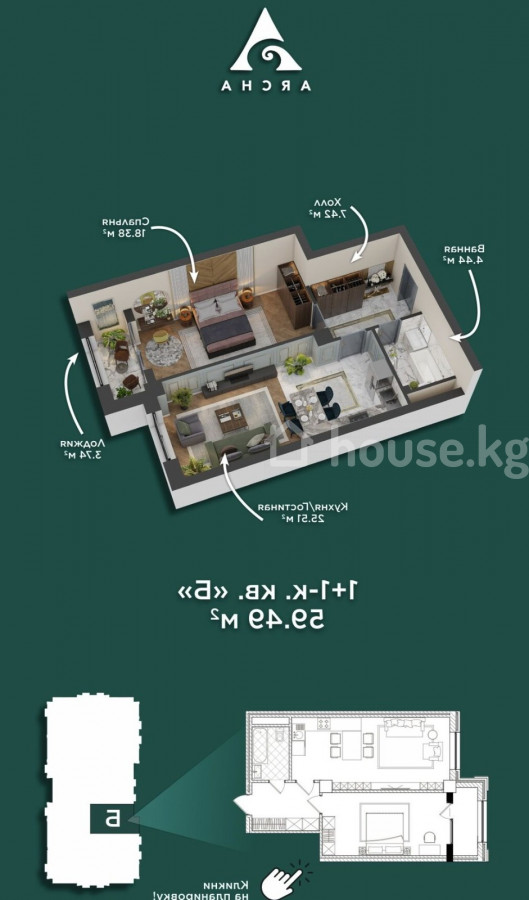 Продаётся 2-комнатная студия ЖК Арча — застройщик ROYAL CONSTRUCTION Площадь: 60 м² Этаж: 9 из 14 Состояние: ПСО Планировка: кухня-гостиная + изолированная спальня Окна: южная сторона, вид на горы Дом и территория: Закрытый двор Круглосуточная охрана Современный бесшумный лифт Инфраструктура: Школы и детские сады Гипермаркеты Удобная транспортная развязка Прогулочные зоны Экологичный район Документы: готовы к оформлению Цена: 83 500 $ ID: 76886 Гарантируем безопасную сделку и полное юридическое сопровождение. Байтик — 0701888874 КЫРГЫЗ НЕДВИЖИМОСТЬ