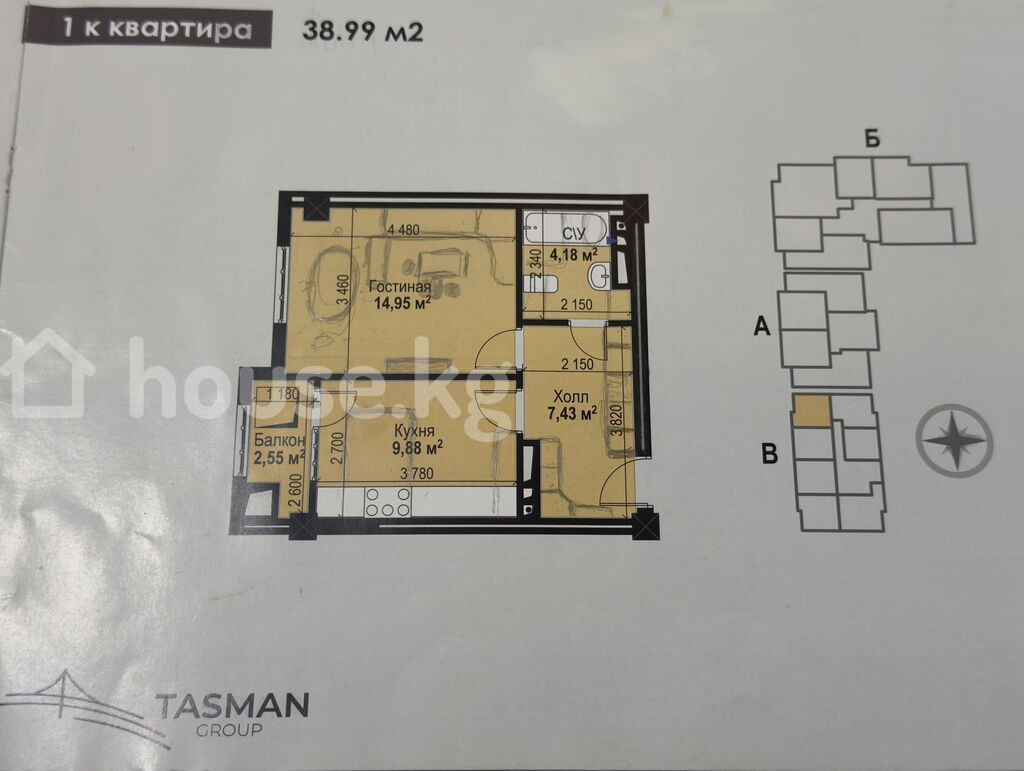 СРОЧНАЯ ПРОДАЖА. Отличная цена Продаётся 1-комнатная элитная квартира в жилом комплексе от Tasman Group, район Аламедин-1. Квартира расположена в строящемся доме (ПСО), отличная возможность приобрести жильё по выгодной цене и сделать ремонт под себя. Расположена на 5 этаже из 10, удобный средний этаж и продуманная планировка. Основные характеристики: Тип недвижимости: элитка Комнат: 1 Площадь: 39 м² Этаж: 5 / 10 Состояние: строящийся ПСО Мебель: отсутствует Коммуникации: газ Документы: ДДУ Планировка: Изолированная жилая комната Отдельная кухня с выходом на балкон Просторный холл с местом под шкаф Совмещённый санузел Квартира угловая по плану секции, окна выходят на одну сторону Цена: 49 000 $ Покупка за наличный расчёт. ID: 77065 Агентство «Кыргыз Недвижимость» обеспечит полное юридическое сопровождение сделки, гарантируя безопасность и прозрачность покупки.
