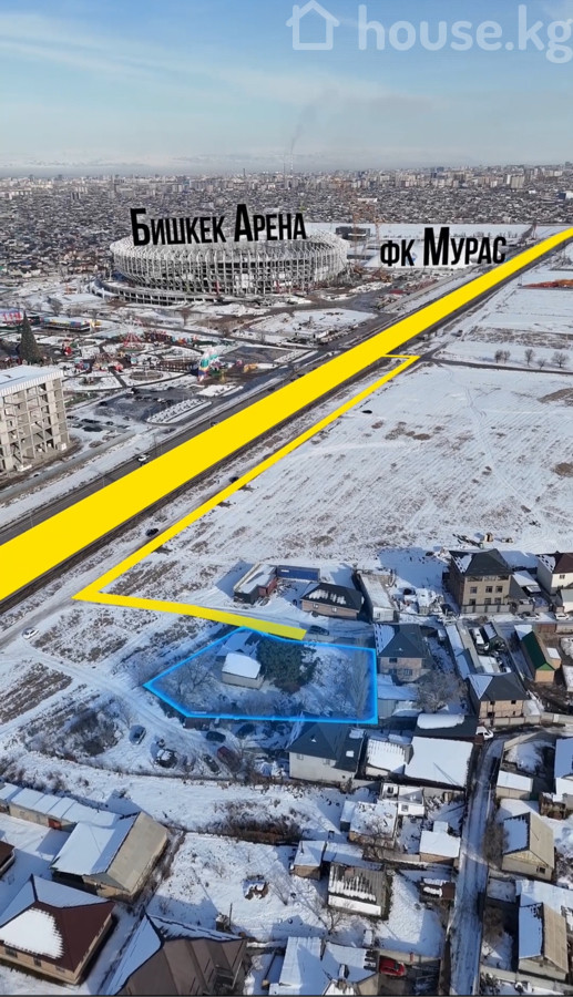 📍Срочно продаётся участок по первой линии по Магистрали напротив парка Евразия , и Бишкек арена, ЦОН и гос регистра ▫️Территория: 13.5соток Параметры 31*43 ▫️Документы: красная книга, техпаспорт, Дкп ▫️Благоустройство: участок расположен по первой линии возле трассы , на участке имеется дом рядом с участком высажены деревья, а также зелень ▫️Инфраструктура: участок расположен в топовой локации, рядом находятся «Парк Евразия», «Бишкек Арена», утб “Мурас Юнайтед” а также магазины, рестораны, аптеки, маркеты и гипермаркеты Цена цена снижена 530000$