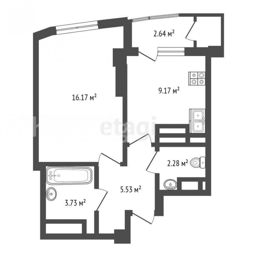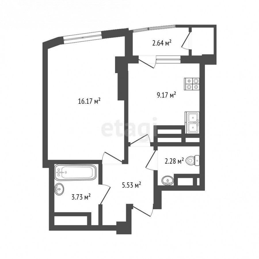 1-room apartment, 39.5 sq. m
