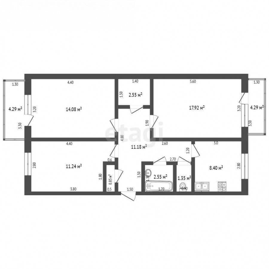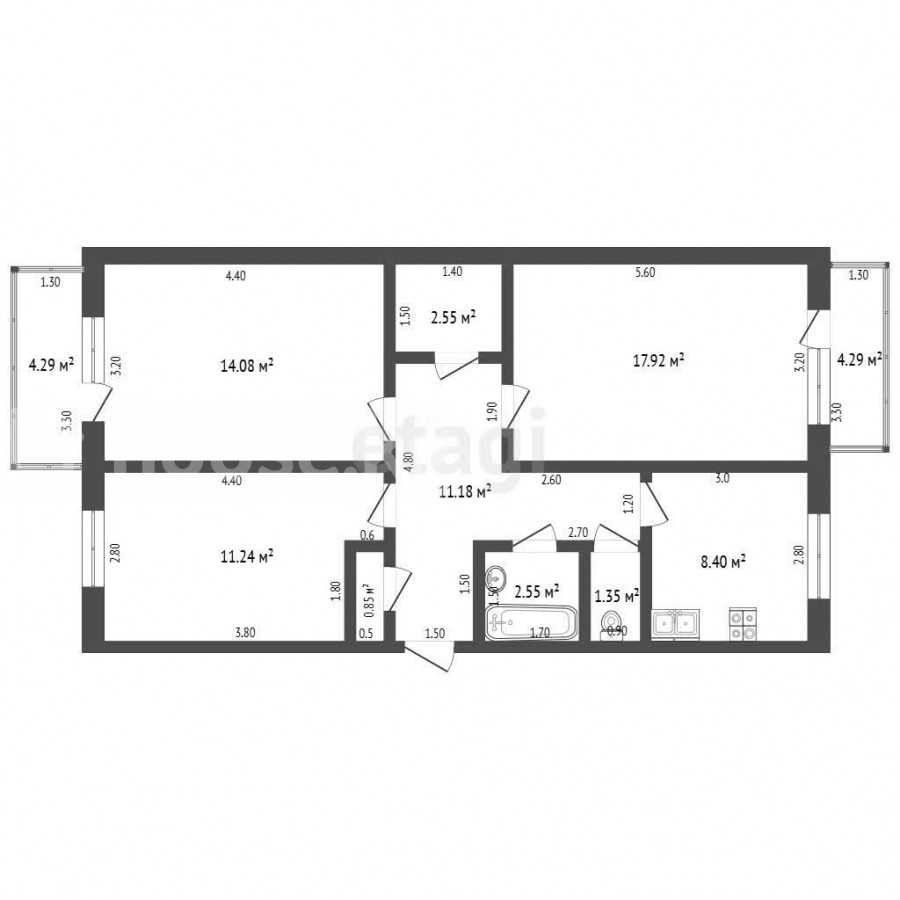 3-room apartment, 70.12 sq. m