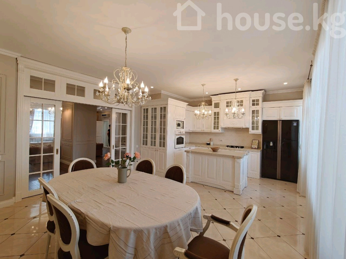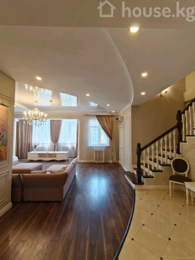 ПРОДАЁТСЯ 5-комнатный пентхаус с готовым ремонтом и мебелью; Адрес: Медерова 48Б (между ул. Элебаева и Жукеева Пудовкина); Этажи: 9 и 10; Площадь: 214 м2; Отопление: центральное; Документы: техпаспорт в наличии. Первый уровень пентхауса имеет максимально свободную планировку. В квартире очень приятно циркулирует энергия за счёт данного факта. ДИЗАЙН ИНТЕРЬЕРА: Дизайн выполнен в классическом стиле с использованием современных решений. Пол выполнен из паркета, имеется тёплый пол. Натяжные потолки. МЕБЕЛЬ: В гостиной установлена высококачественная мебель из МДФ материала, который не впитывает влагу и отличается долговечностью. Также присутствует качественная и визуально стильная мягкая мебель. Всё обустроено очень удобно для использования. КУХНЯ: На кухне установлен очень качественный кухонный гарнитур в классическом стиле. Все столешницы выполнены из керамогранита. Кухня оборудована лучшей техникой от топовых брендов: Gorenja, Hitachi, Indesit. СПАЛЬНИ: Изюминка данного пентхаус мастер-спальня с большим функциональным гардеробом и с собственным санузлом. Также имеется очень уютная детская комната с двумя спальными кроватями.