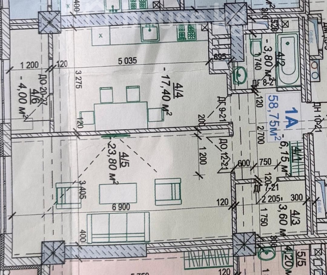 1-room apartment, 60 sq. m