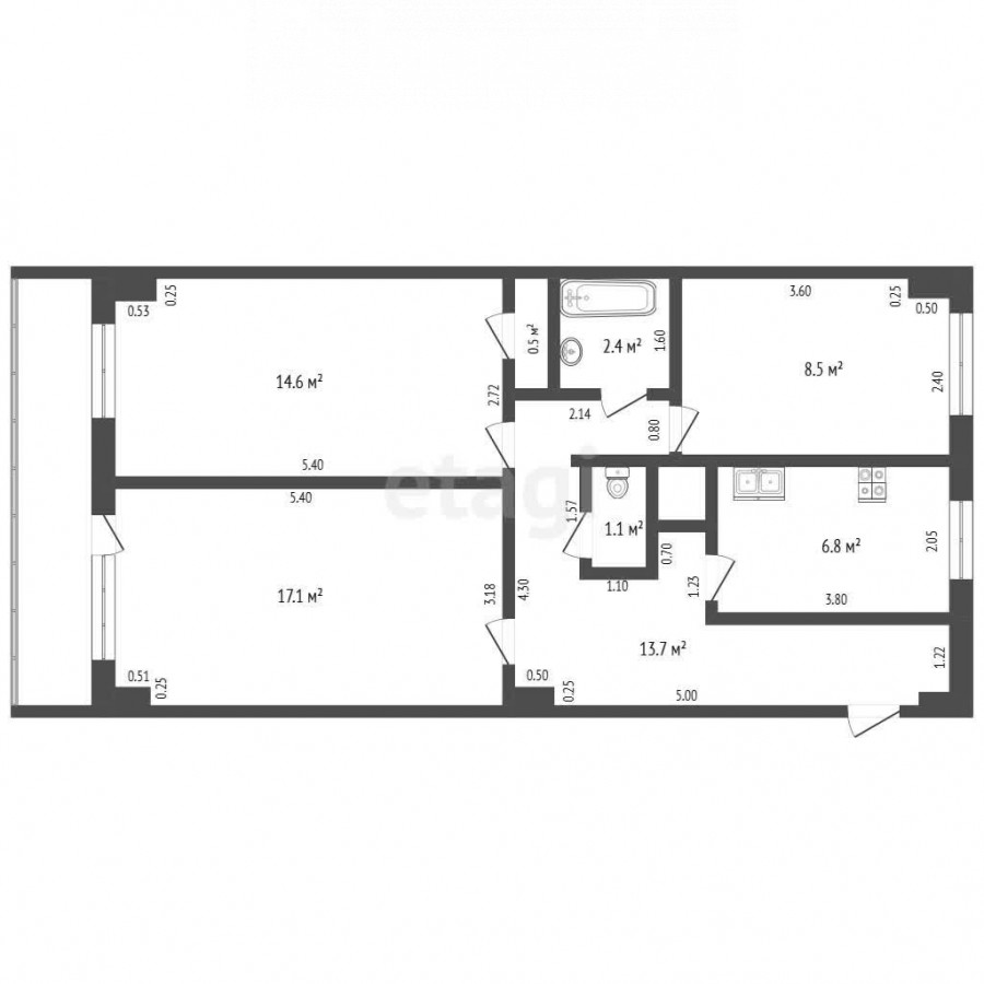 3-room apartment, 72 sq. m