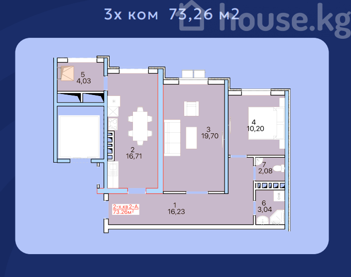 3-room apartment, 73.26 sq. m