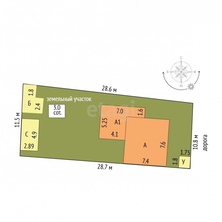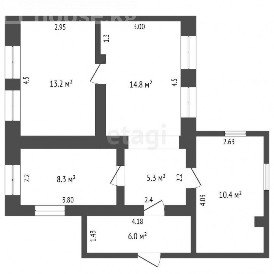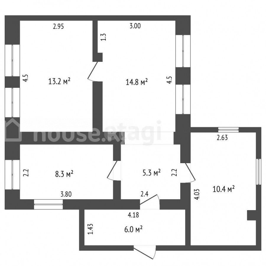 House, 3-room, 56.2 sq. m