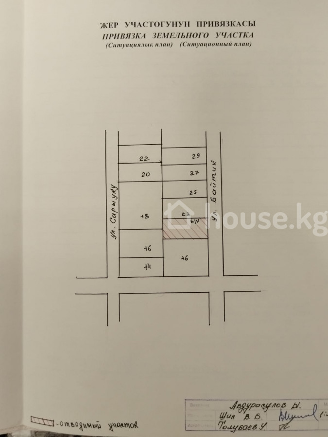 Sale, land plot, named after S.Chokmorov