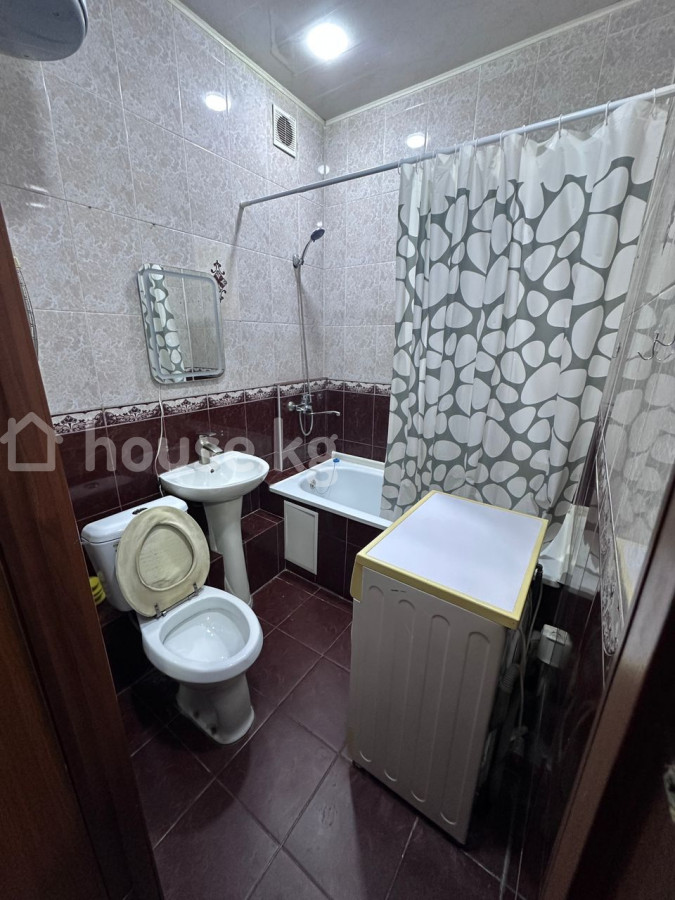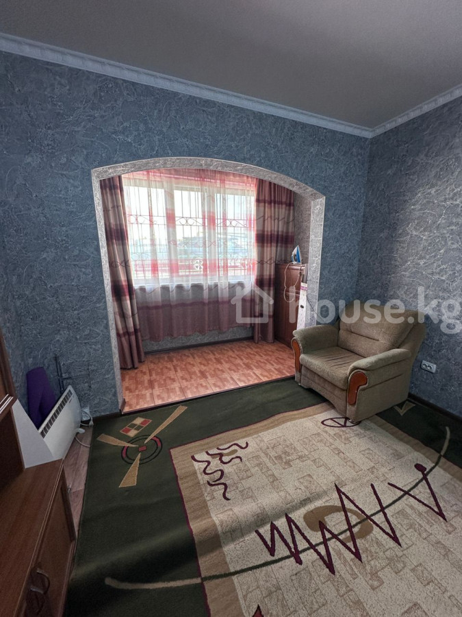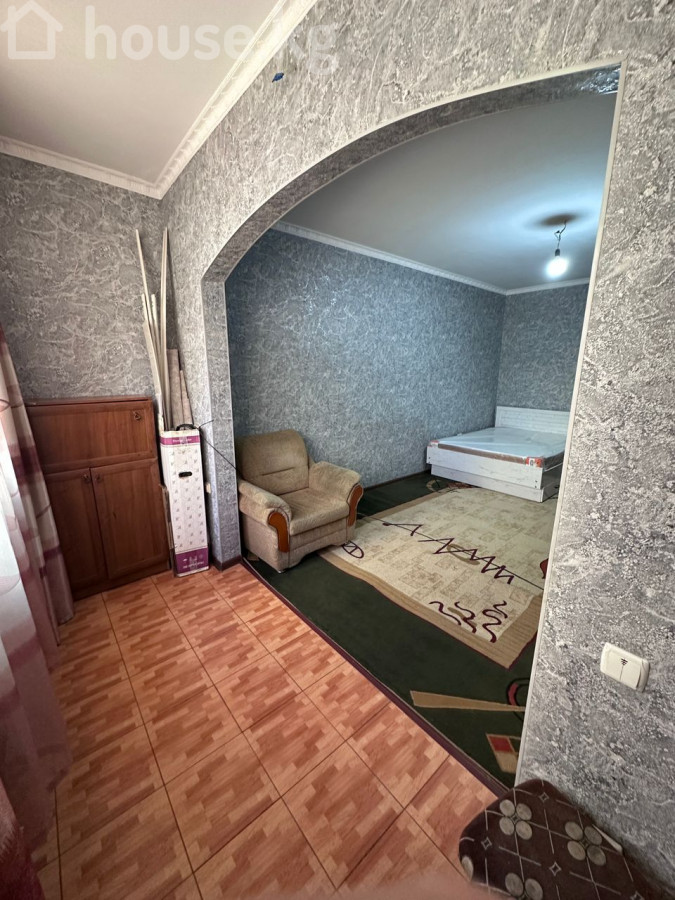 Улан 2 сдается 1 к квартира 106 серия на длительный срок желательно для 2 не курящих и без животных Цена 35 000 т сом и 10 000 депозит плюс ком услуги Описание: - Планировка с арочным проемом: зона отдыха и спальная зона визуально разделены. - Окно с решетками, плотными шторами и тюлем. - Мебель: кресло, деревянный шкаф/гардероб в прихожей, тумбы; в спальной зоне установлена кровать. - Полы: линолеум в коридоре и комнате, плитка у окна. - Стены: обои нейтрального серого цвета, потолочный плинтус. - Отопление: электрический конвектор на полу. - Санузел совмещенный, в плитке: ванна с душем, умывальник, унитаз, зеркало, вытяжка, потолочные светильники. - Техника: стиральная машина в ванной комнате. - Освещение: потолочные светильники и лампа в спальной зоне. - Напольный ковер в жилой части. - Цена 35 000 т сом и 10 000 депозит плюс ком услуги Подойдет для одного-двух человек, есть базовая мебель и бытовая техника для проживания.