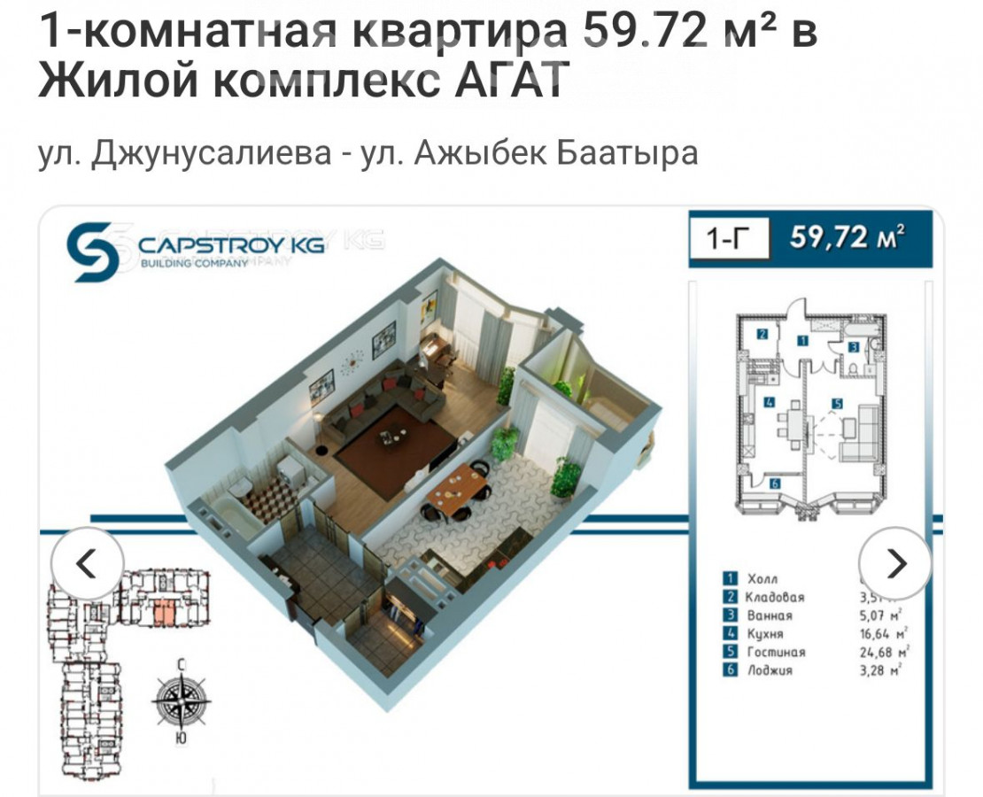 Продается 1- комнатная квартира 📍Адрес: Ак-Кеме (старый аэропорт) 🏗Застройщик: Кап Строй 🏢 Жилой Комплекс: Агат 🏛Серия: Элитка 🏬Этаж/Этажность: 13 из 16 📐Площадь: 59 м2 💧Коммуникации: центральный ♨Отопление: центральное 🚪Состояние квартиры: ПСО сдан 🚽Сан узел: совмещённый 📃Документы: Договор долевого участия 💵Цена: 86,000$ ID0020 Адилет