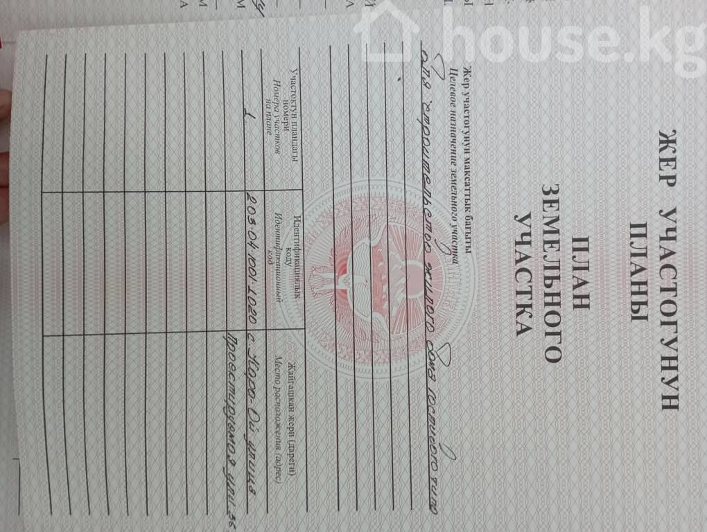 $ 97 500 $ 5 830/сотка 8 539 050 сом 510 591 сом/сотка