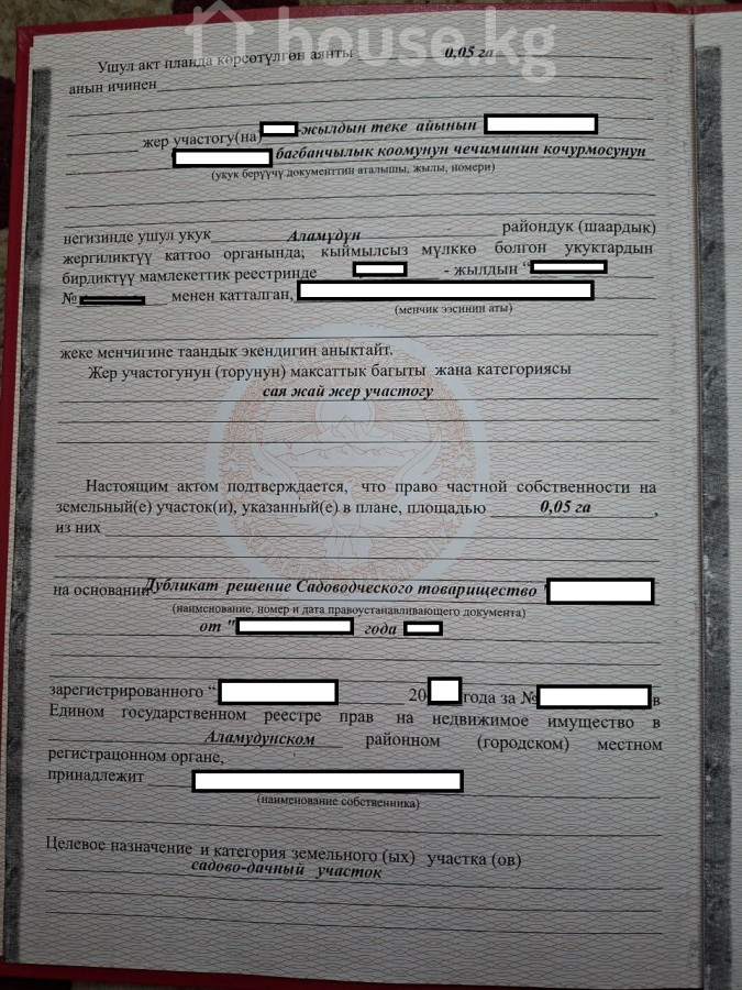 Жер участогу, 5 соткалар