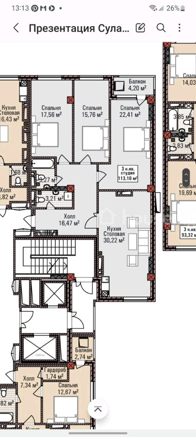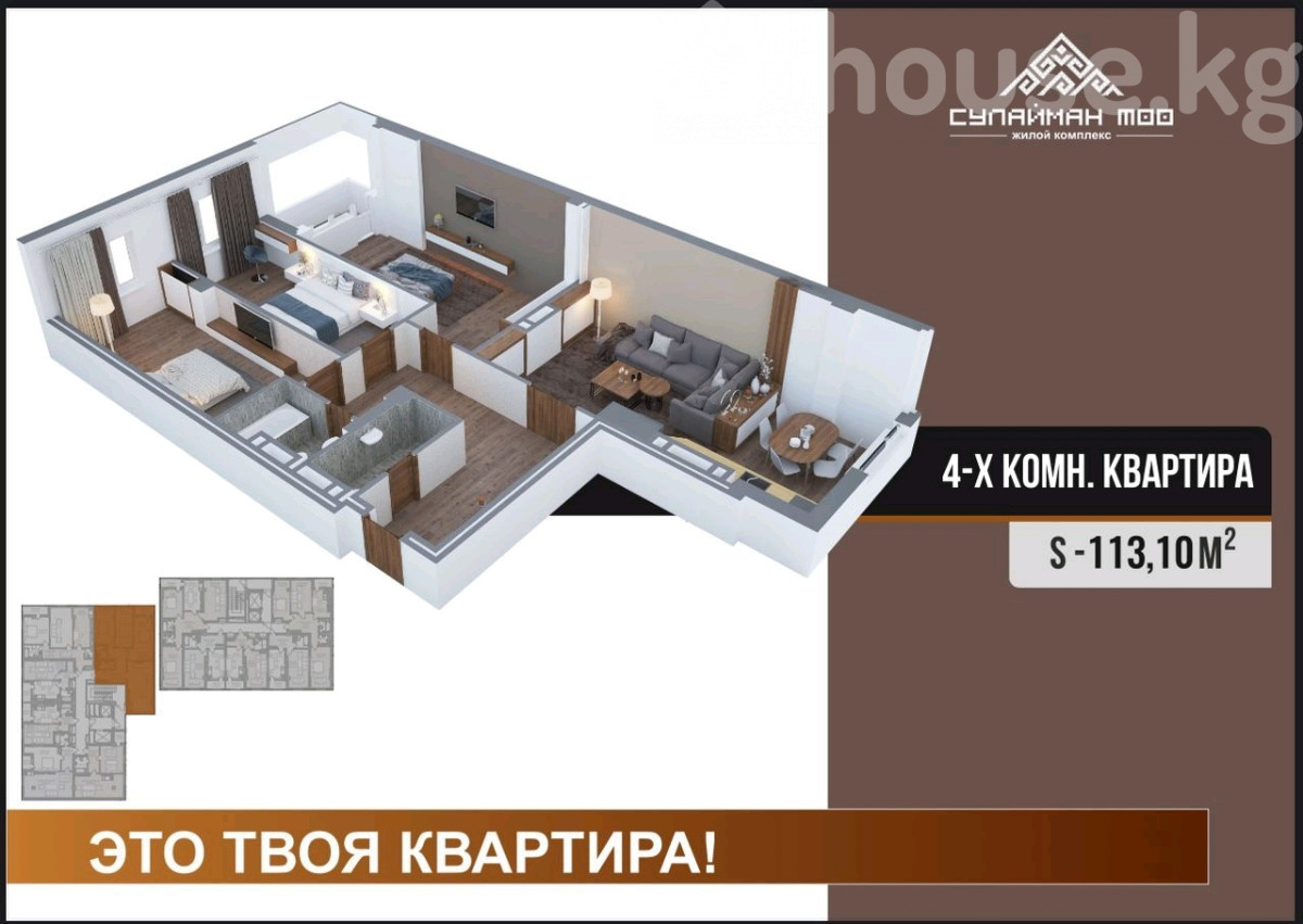 113 м2, турак жай: 86 м2, ашкана: 30 м2