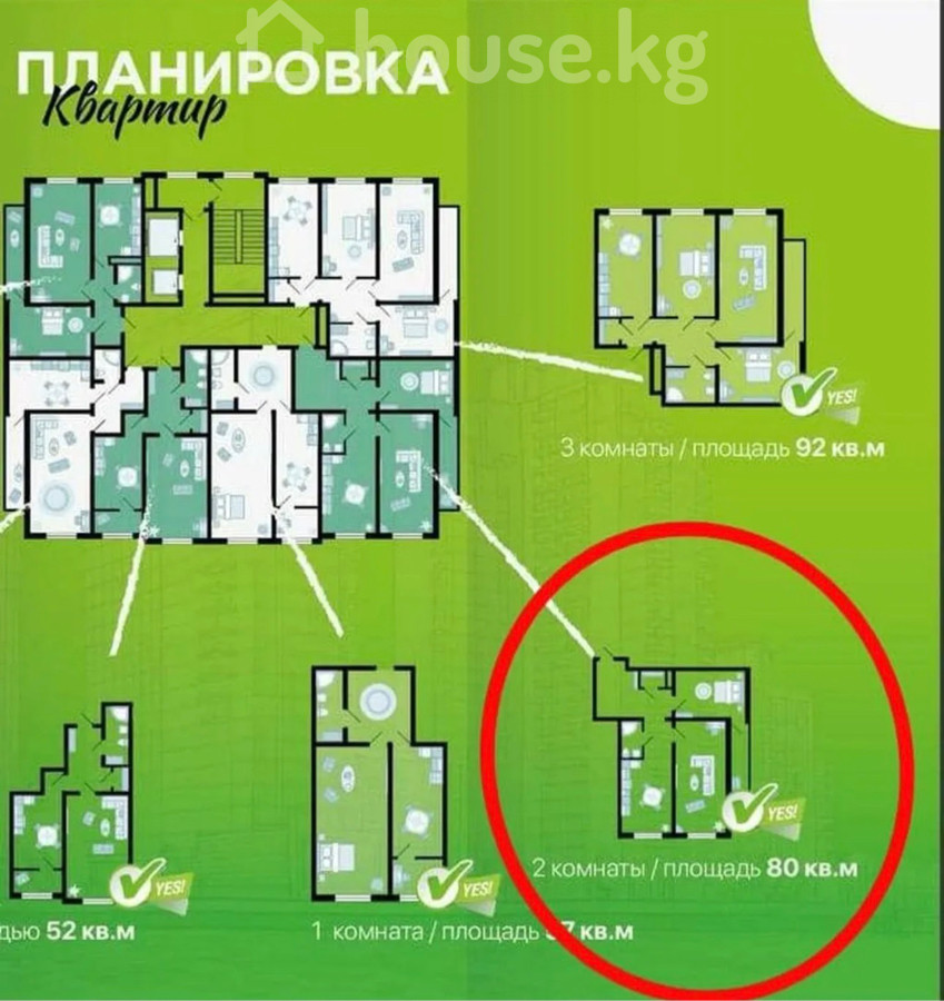 2-бөлм. бат., 80 м2