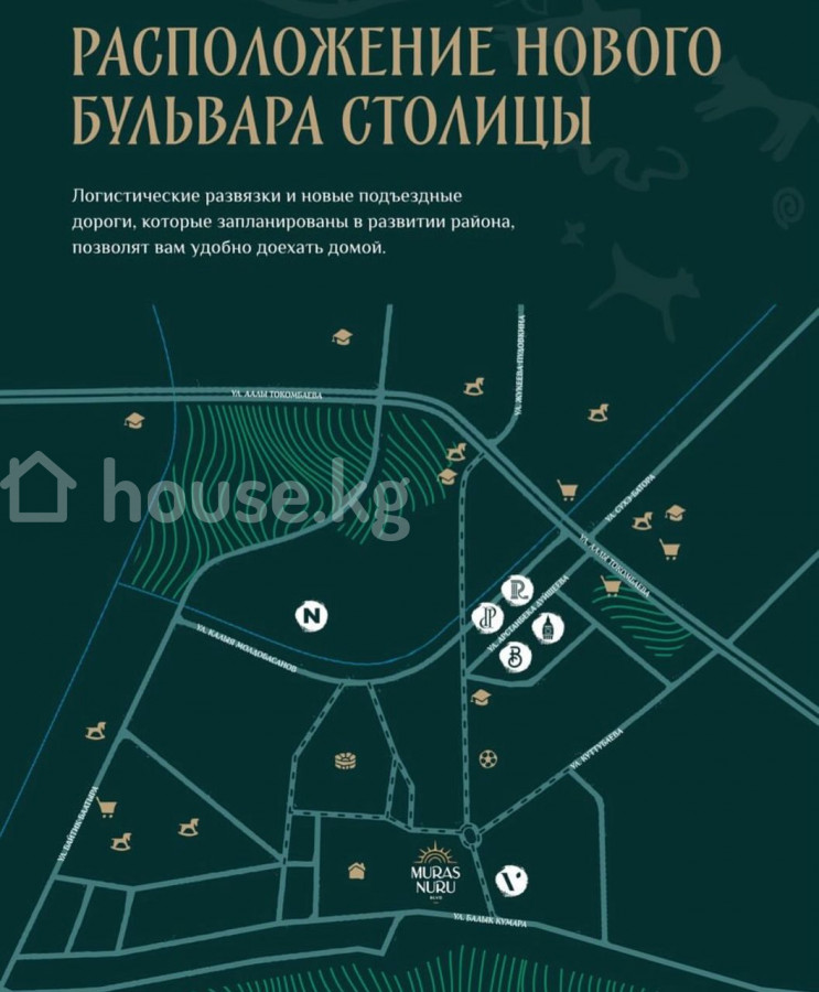 Cрочно продаю 2-ком студия в ЖК «Мурас Нуру» Одна из лучших строй компаний "НУРЗАМАН" NURZAMAN - с. Орто-Сай, ул. Балык Кумара, 70, рядом с VIP‑городком «Ордо» - район со свежим горным воздухом, тишиной и панорамными видами на горы Параметры и планировка: - площадь: 59м² - отопление: газовое - сдача: 1 квартал 2027 года Идеальный вариант для семьи и выгодное капиталовложение в престижной локации у подножия гор.