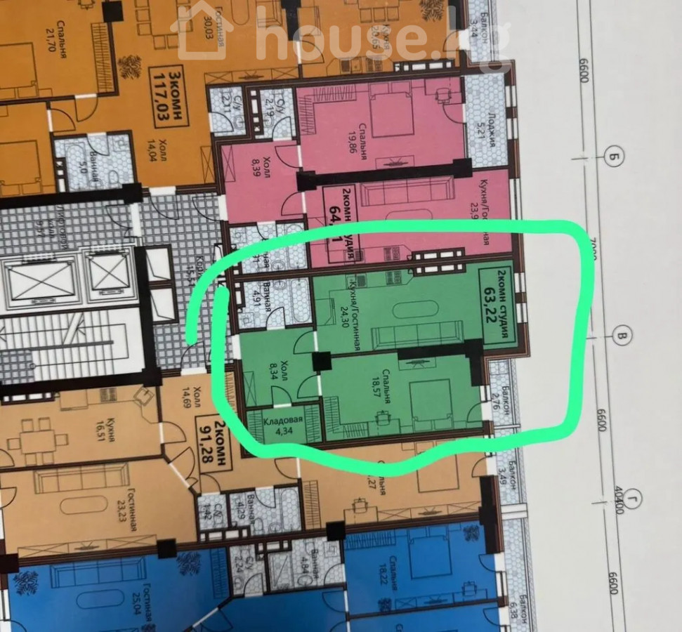 64 м2, турак жай: 38 м2, ашкана: 7 м2