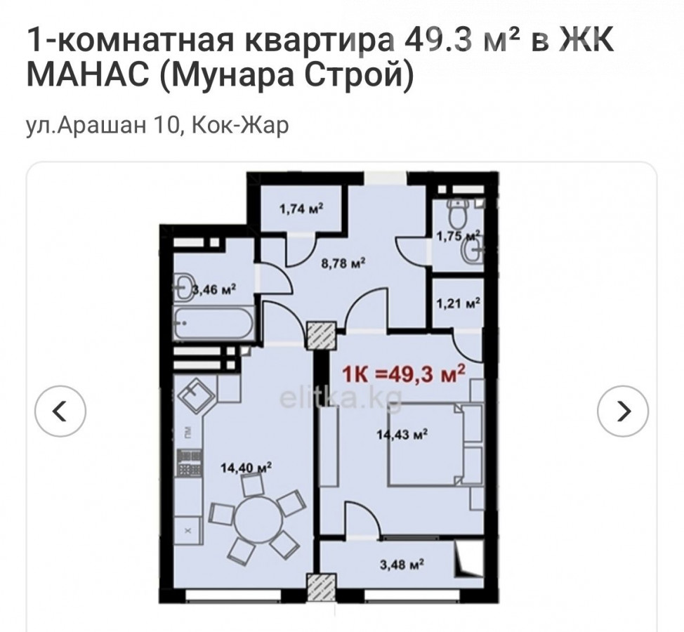 Сатуу, 1-бөлм. бат., элитка, Бишкек, Көк-Жар а.