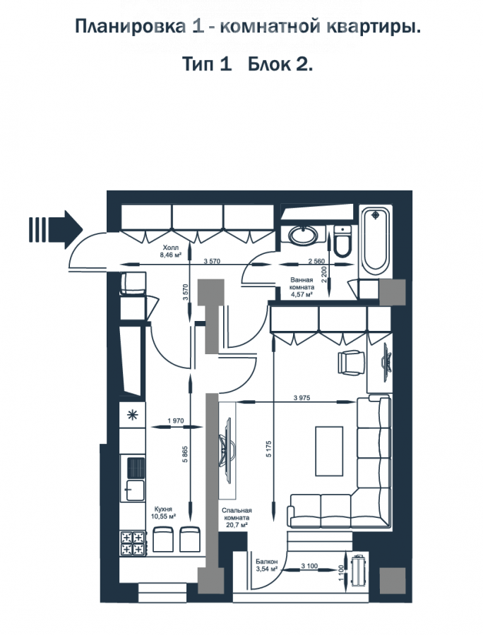 1-бөлм. бат., 48 м2