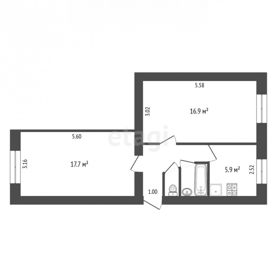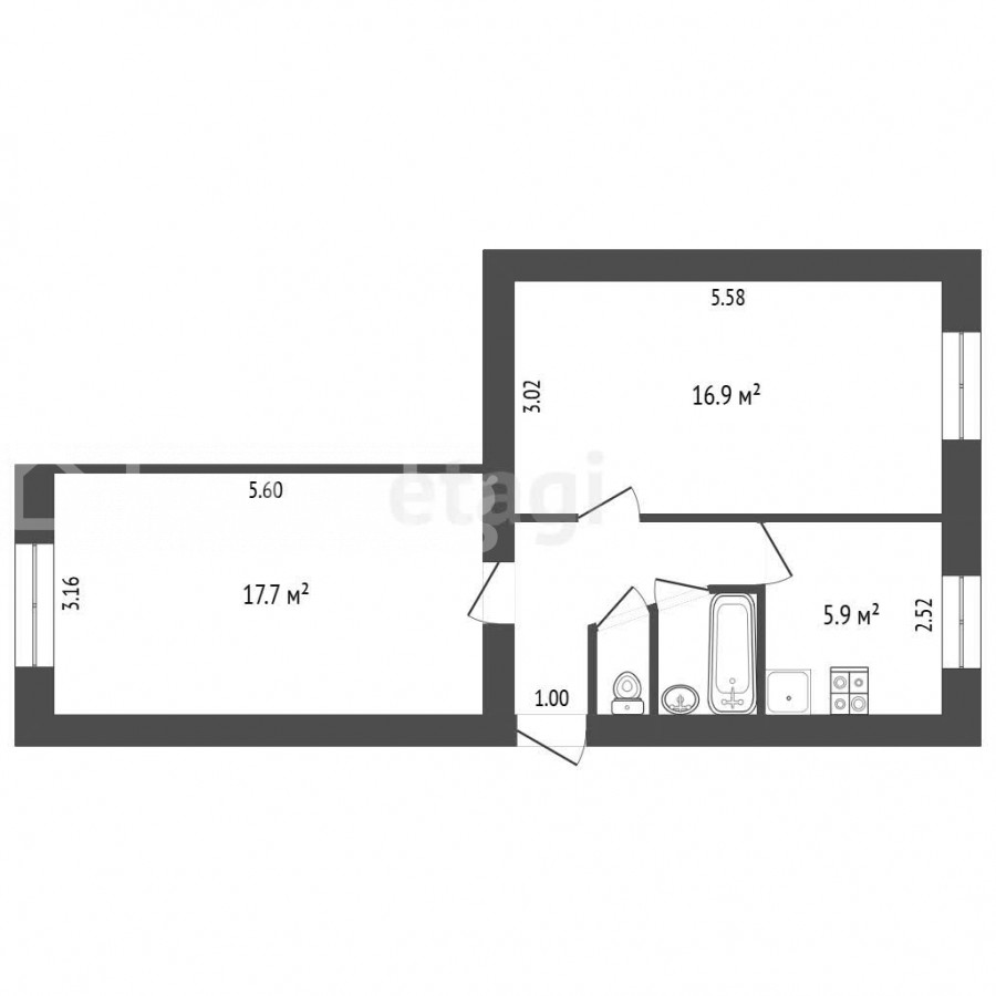 48 м2, турак жай: 34.6 м2