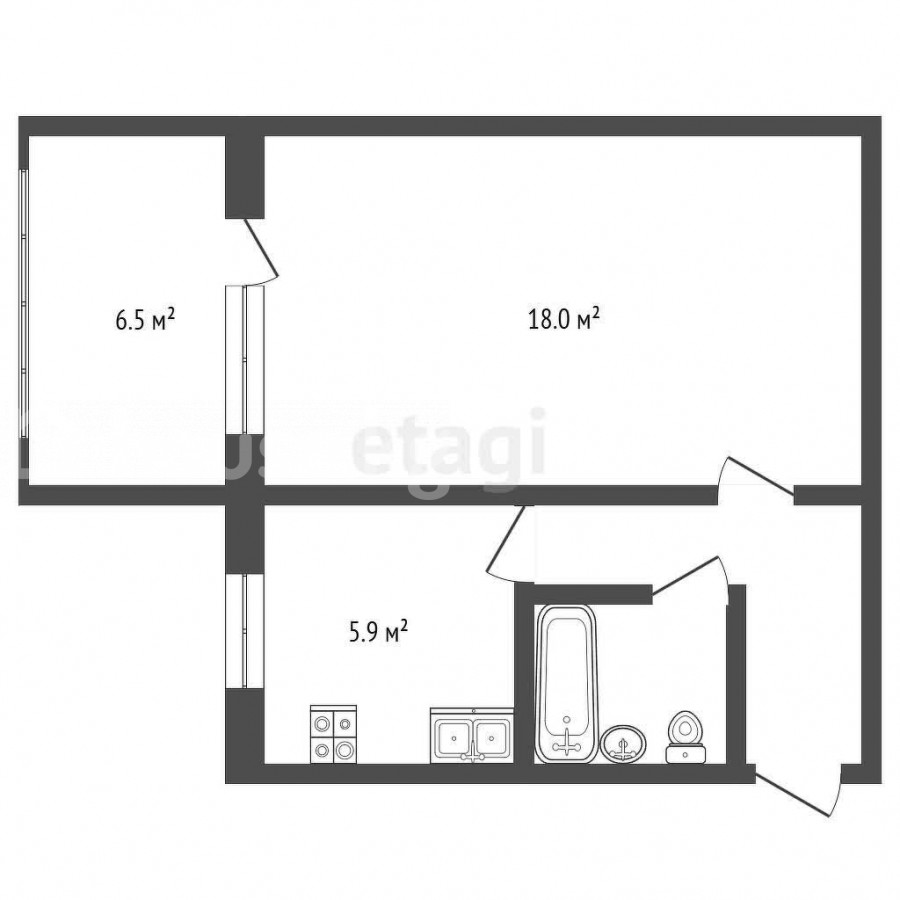 34 м2, турак жай: 17.8 м2