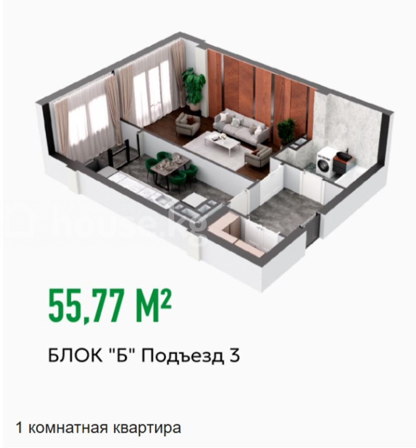 1-бөлм. бат., 56 м2