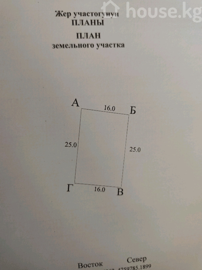 $ 85 000 $ 20 375/сотка 7 443 450 сом 1 784 239 сом/сотка