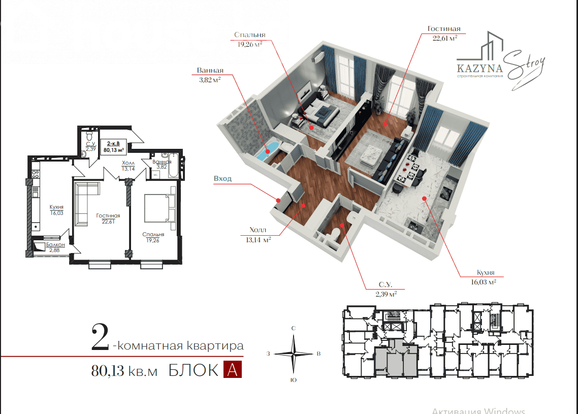 2-бөлм. бат., 80.12 м2