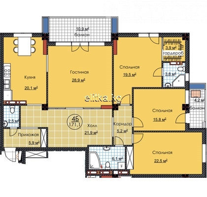 171 м2, турак жай: 171 м2