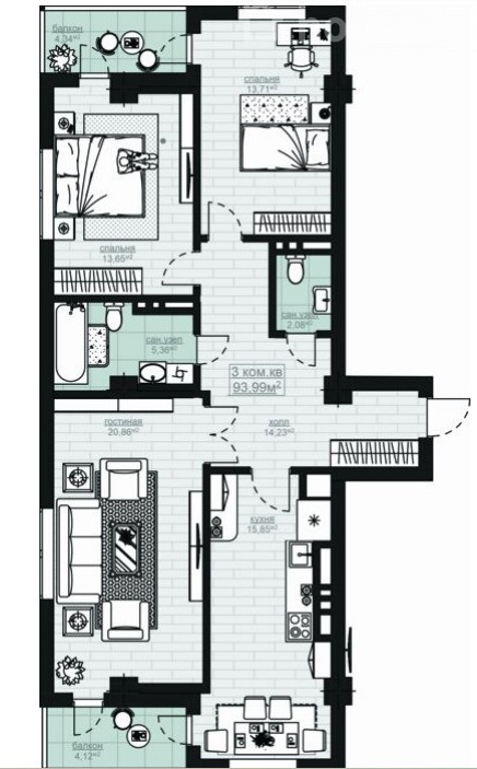 3-бөлм. бат., 94 м2