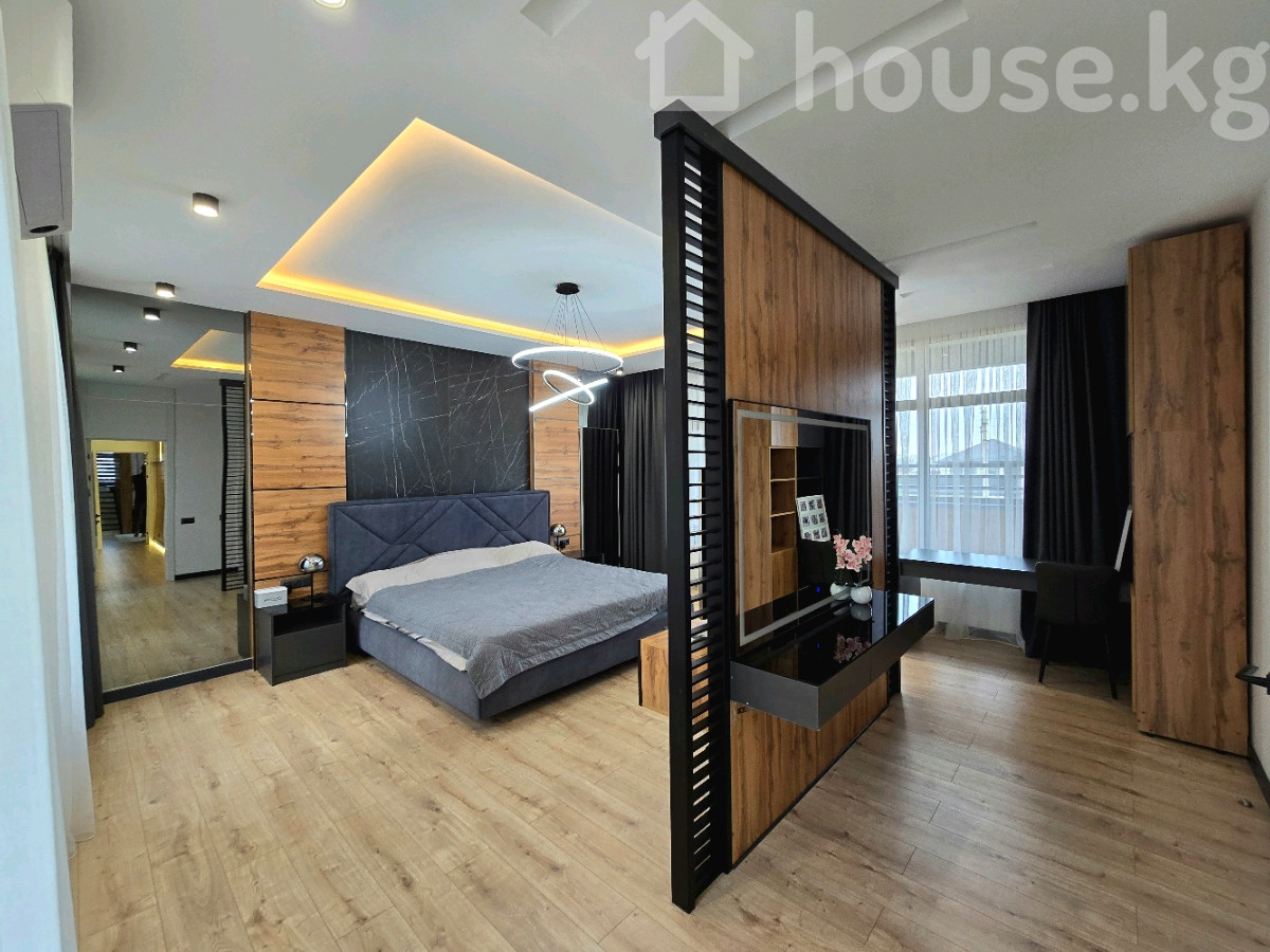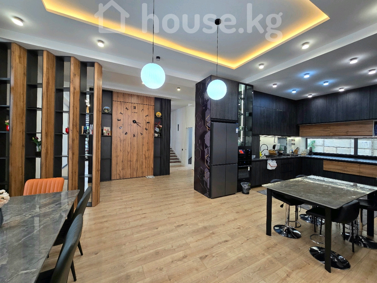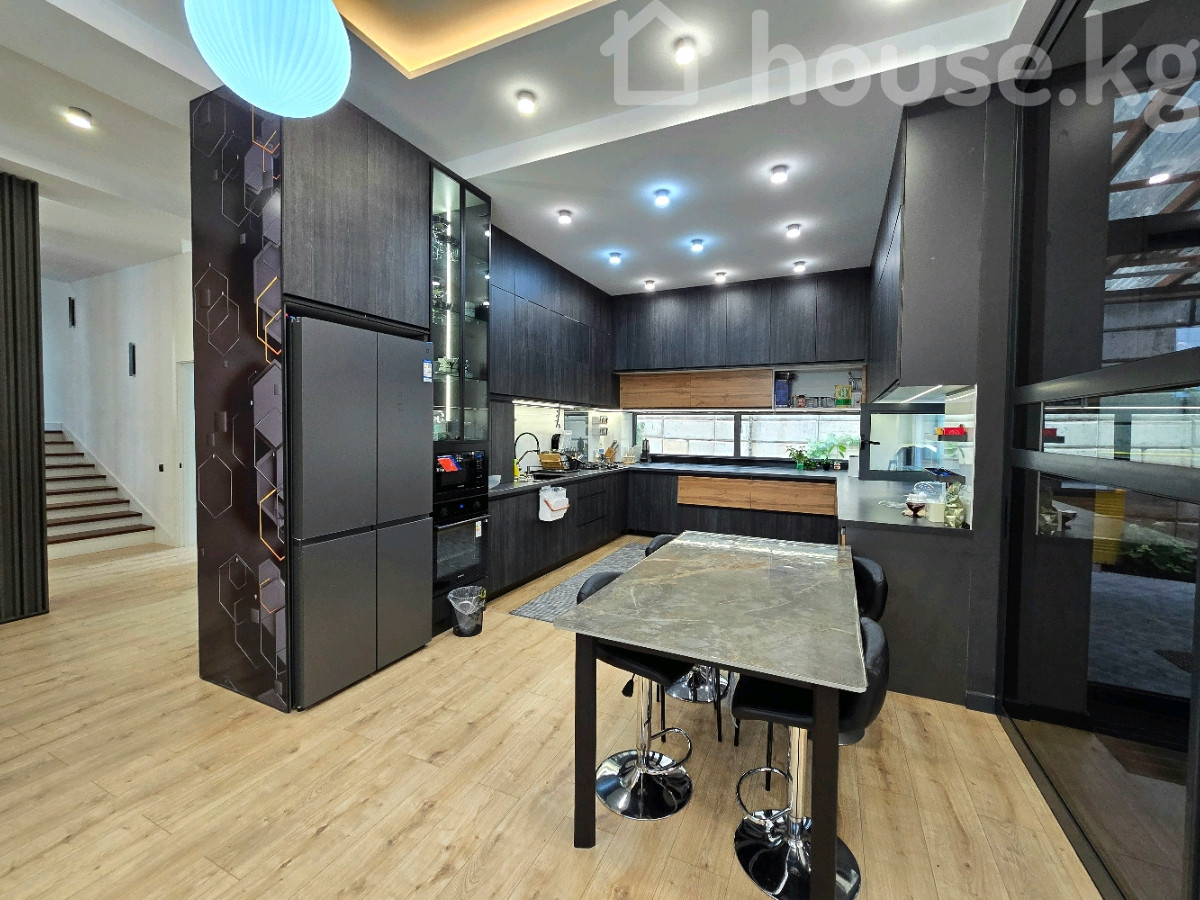 Продаю Современный Дом в 4 уровня Ж/М Ынтымак Площадь 520 м2 Участок 7,87 соток фактически, 6 соток по документам 2021 год постройки 1 этаж: гостиная, спальня, кухня, малый зал, санузел, холл, тамбур, кладовая 2 этаж: 4 спальни, кабинет, 2 санузла, гардеробные, холл 3 этаж: комната отдыха с кухней и двумя выходами на эксплуатируемую террасу Цоколь: игровая комната (спорт зал), котельная На территории: теплый гараж на 2 авто, навес, кладовая, санузел , очок кана, зона барбекю Все коммуникации, отопление Газовый котел Стоимость $1 200 000