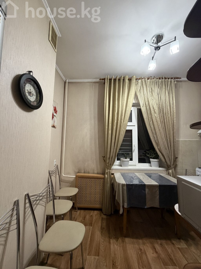 1-комн квартира вАламедин-1 105 серия 35 кв.м однокомнатную угловую комнату, утеплённую снаружи. 4 этаж из 5. Зимой очень тепло. Состояние хорошее, светлая, тёплая, чистая, удобная планировка. Подойдёт для проживания или сдачи в аренду. Частично остаётся мебель. Квартиранты не жили. Соседи хорошие. Тихий район . На окнах установлены решётки для безопасности детей. Очень хочется оставить квартиру хорошим хозяевам. Адрес Аламедин 1. Рядом кафе “Жасмин” Рынок Чолпон, Чынар. Школа 38, 1. Детский сад 51. ID: 73776