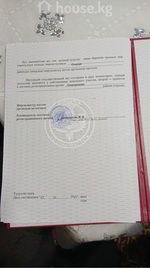 $ 64 000 $ 15 500/сотка 5 604 480 сом 1 357 335 сом/сотка