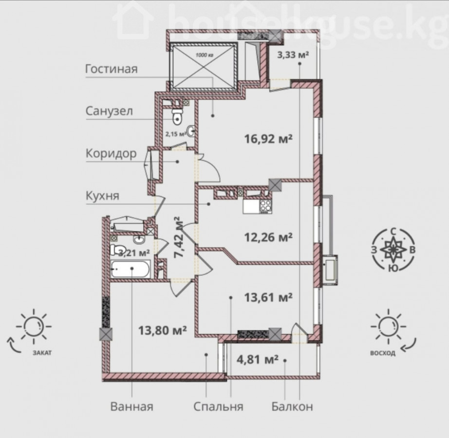 3-бөлм. бат., 76 м2