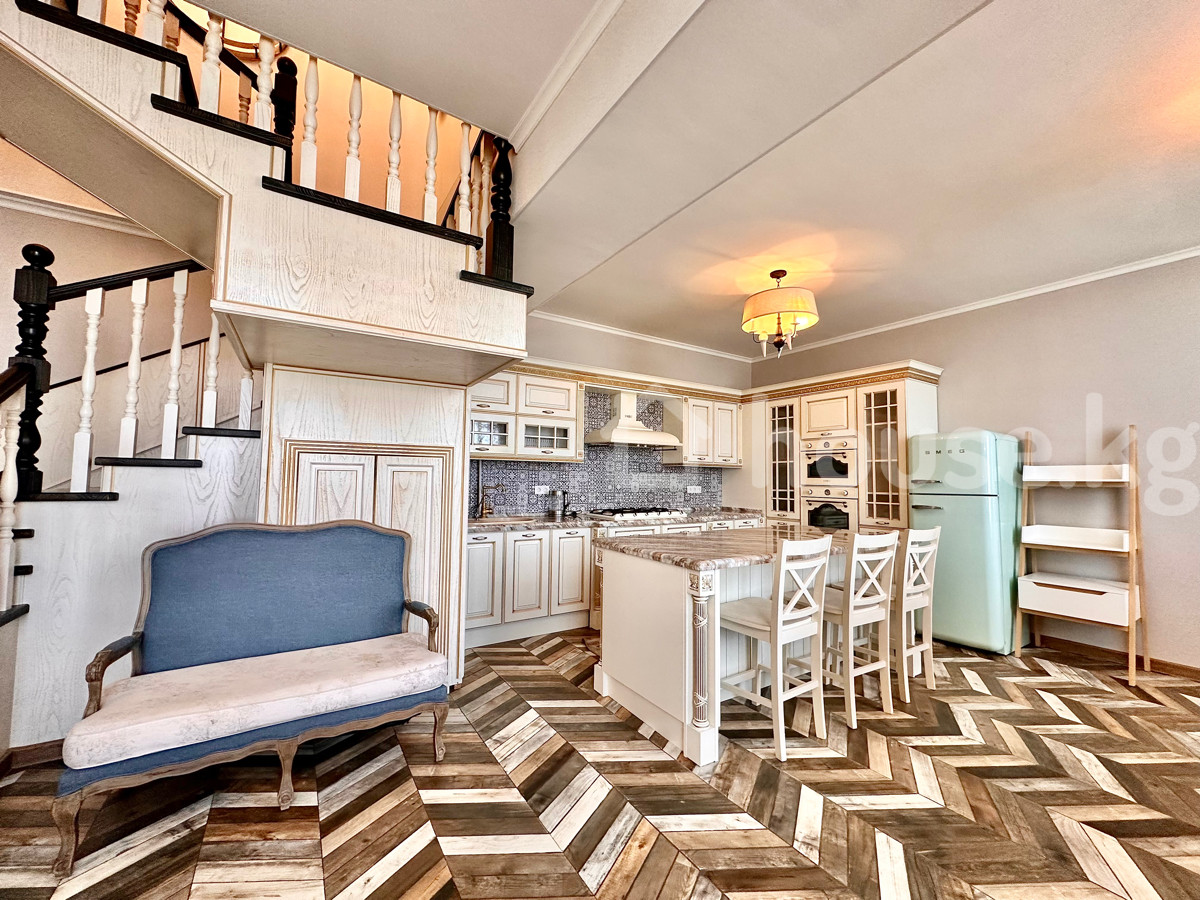 Сдаётся дизайнерский 4-х комнатный Пентхаус с роскошным и стильным ремонтом. В живописном районе с развитой инфраструктурой Асанбай! Общая площадь: 145 кв.м Высота потолков: 6м,панорамный вид на город Все коммуникации подключены: газ,свет,электричество,вода,отопление Элитный жилой дом: «Лондон», с хорошей парковкой,безопасностью,workout zone,детская площадка,сад и беседки. Планировка включает в себя: 3 спальни,2 с/у,гостиную+кухню студию,зону тапчана и домашний кинотеатр. Вся техника в доме от производителя: Smeg Стоимость данной роскоши: 2000$ + депозит Сдаётся на долгий срок! +996 555 76 56 09 Ан просьба не беспокоить!