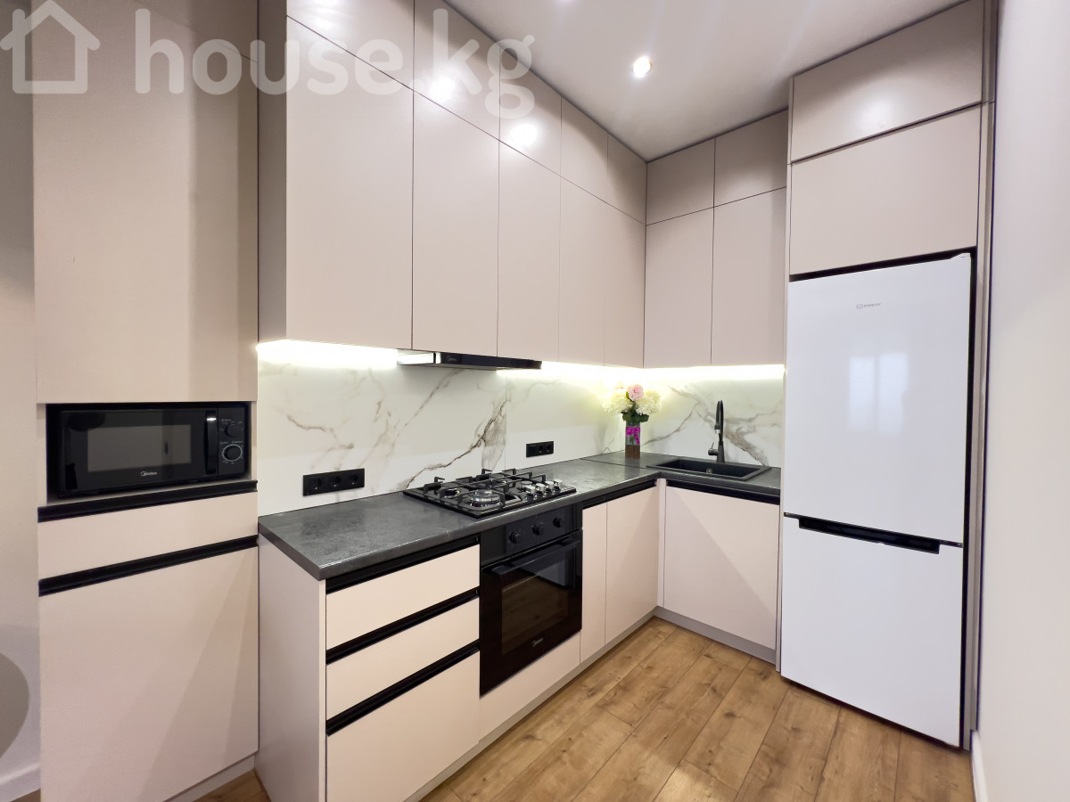 ашкана-студия, жаңы сантехника, кондиционер, буручтуу эмес, өзүнчө бөлмөрөр, ашканадагы эмерек, тынч короо