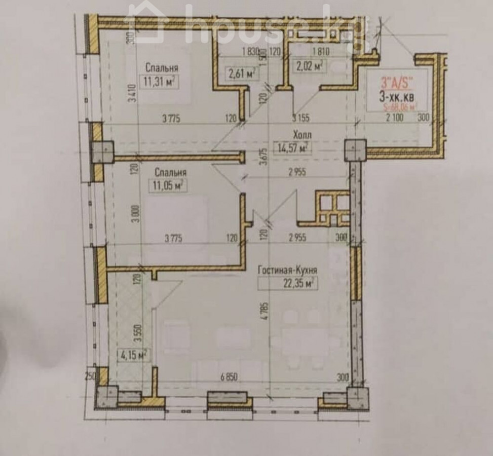 3-бөлм. бат., 68 м2
