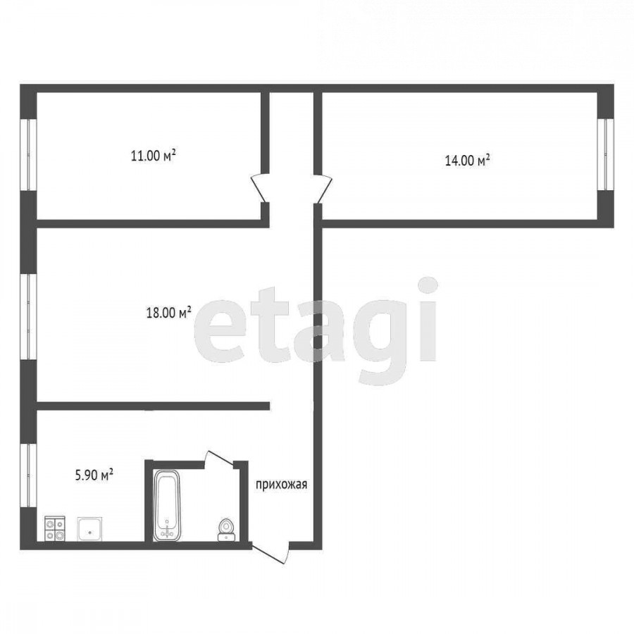 3-бөлм. бат., 58 м2