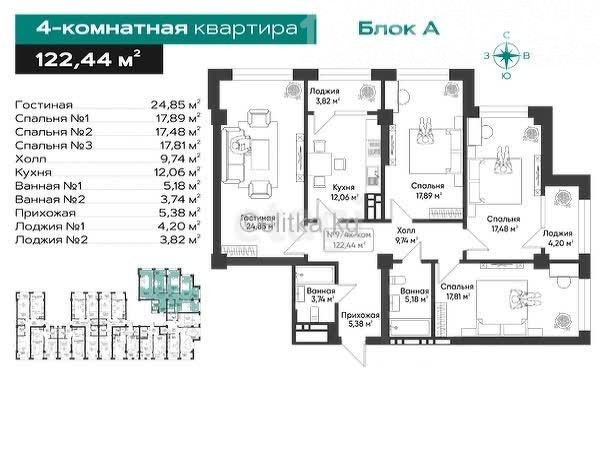 4-бөлм. бат., 120.04 м2