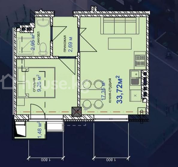 $ 45 450 $ 1 317/м2 3 978 239 сом 115 277 сом/м2