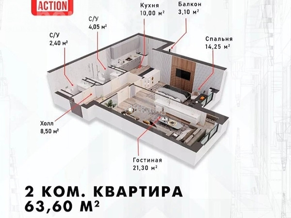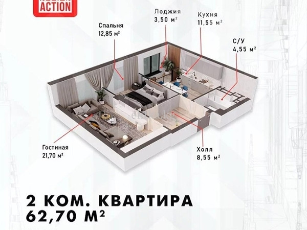 2-бөлм. бат., 63 м2