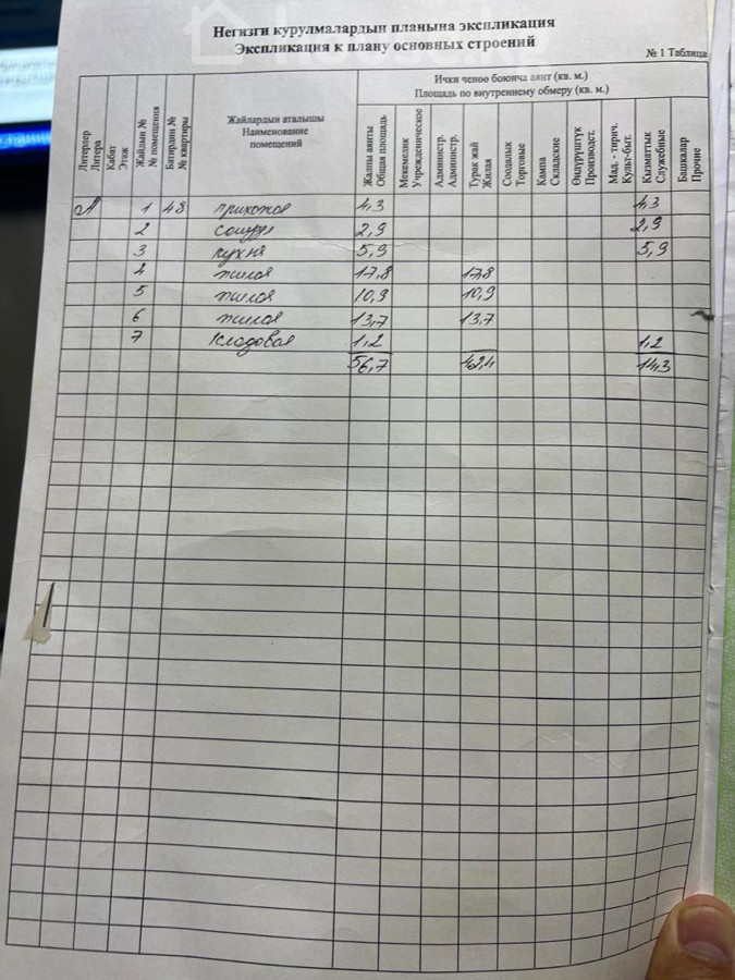 58 м2, турак жай: 58 м2, ашкана: 5 м2