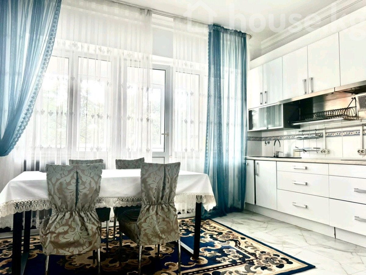 Сдается 4 комнатная квартира в Золотом квадрате, на Логвиненко 21/2 Боконбаева. Дом находится в самом центре золотого квадрата, в шаговой доступности от всех главных достопримечательностей и удобств города. Общая площадь составляет 200 кв.м, расположена на 3-м этаже. Дизайнерский ремонт, панорамное остекление, красивый вид на город. Квартира полностью меблирована и оборудована всей необходимой бытовой техникой. Имеется подземный паркинг, охраняемый двор, видеонаблюдение и детская площадка. Минимальный срок аренды 6 месяцев. Цена: $1650 и депозит Тел:0507 03 09 00 Бакыт For rent 3-bedroom apartment in the Golden Square, on Logvinenko 21/2 Bokonbayeva. The house is located in the very center of the golden square, within walking distance of all the main attractions and amenities of the city. The total area is 200 sq.m, located on the 3rd floor. Designer renovation, panoramic Glazing, beautiful view of the city. The apartment is fully furnished and equipped with all necessary household appliances. There is an underground parking, a guarded courtyard, video surveillance and a Playground. The minimum rental period is 6 months. Price: $1,650 and deposit Phone:0507 03 09 00 Bakyt