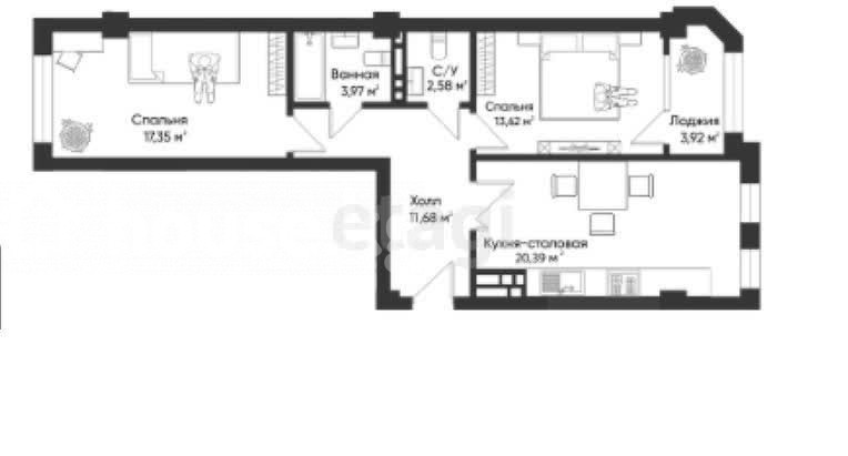 2-бөлм. бат., 74.78 м2