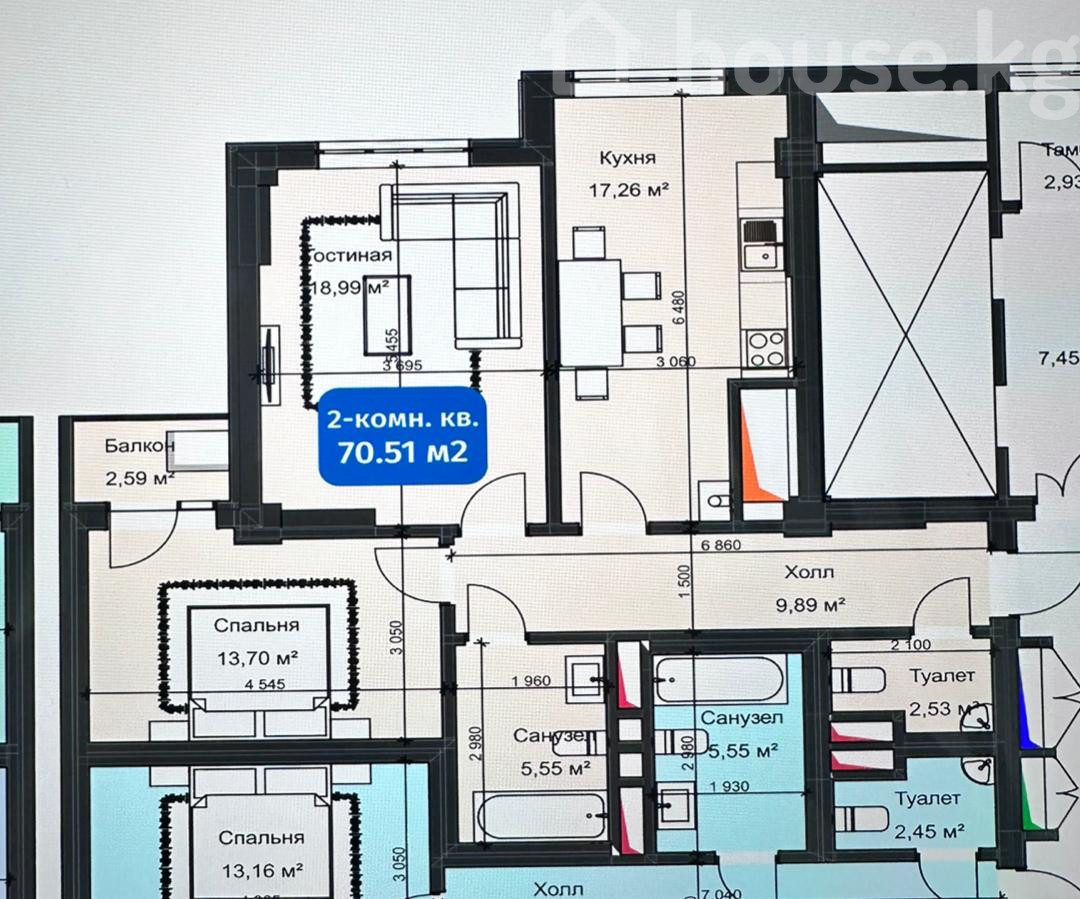 $ 78 042 $ 1 140/м2 6 834 918 сом 99 841 сом/м2