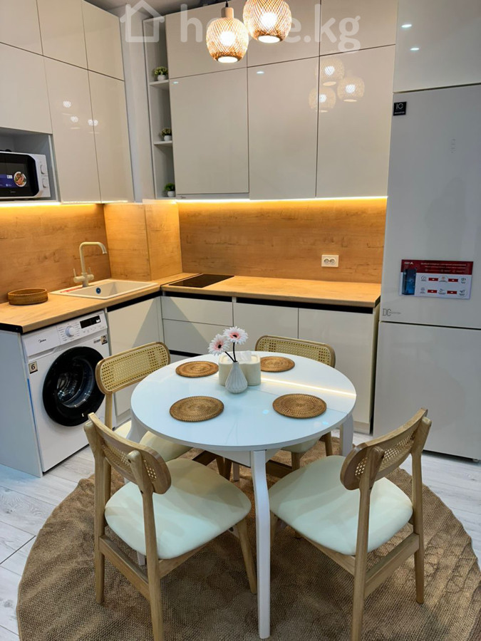 кондиционер, жаңы сантехника, ашкана-студия, ашканадагы эмерек