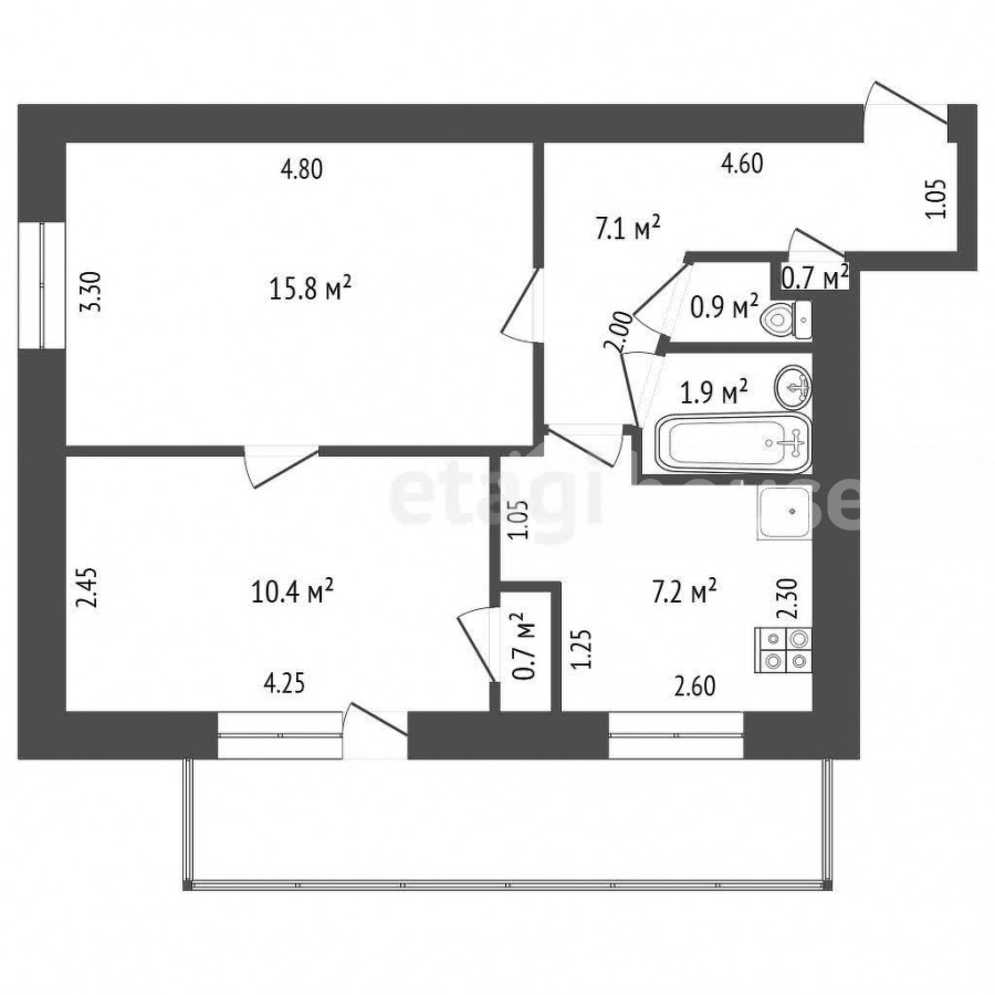 2-бөлм. бат., 42 м2