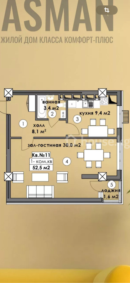 House_kg Продажа: 1-комн. кв., 52 м2 Адрес: Бишкек, Кок-жар ул. Молдокулова 30/2 Цена: $ 60.000 Застройщик: Бийиктик инвест Жилой комплекс: ЖК Асман Серия: элитка Дом: монолитный, 2025 г. Этаж: 11 этаж из 12 Кол-во этажей: 12 Площадь: 52 м2 Отопление: газ Состояние: ПСО Телефон: + Продается 1 комнатная ДДУ через госрегистр О доме: сдан под ПСО в 2025 году, стены в 1.5 кирпича, также утеплен базальтом
