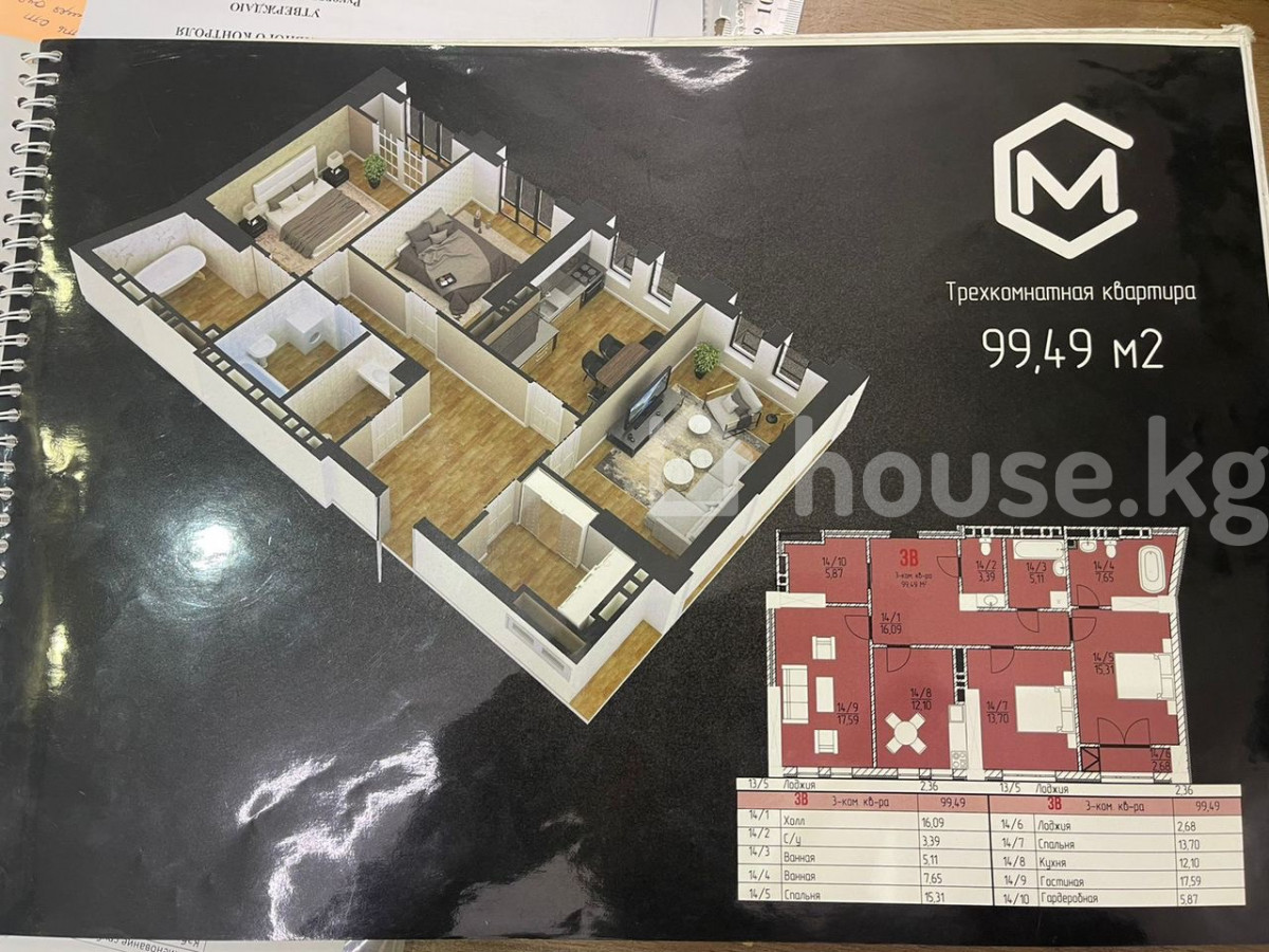 3-бөлм. бат., 99 м2