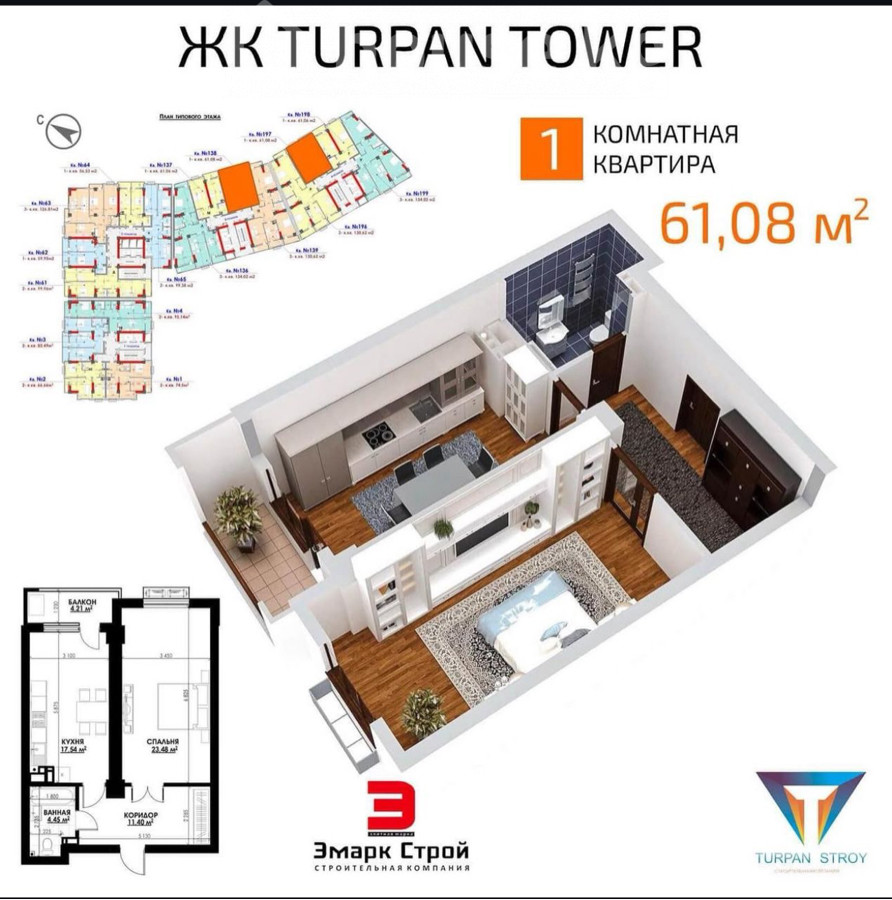 🏙 Продаётся однокомнатная квартира в Turpan Tower — доме, где сочетаются статус, комфорт и природа. Идеальный вариант как для инвестиций, так и для собственного проживания! 📍 Локация: Рядом с Азербайджанским парком и Южными воротами. Один из самых экологически чистых и зелёных районов Бишкека — чистый воздух, тишина и близость к горам. 🏢 Характеристики квартиры: • Площадь — 61,08 м² • Этаж — 12 из 18 • Современная планировка • Простор, свет и панорамный вид • Дом премиум-класса • Сдача — уже в этом году! 🏗 Преимущества Turpan Tower: ✔ Уютный внутренний дворик и детская площадка ✔ Гостевой паркинг, видеонаблюдение, охрана ✔ Развитая инфраструктура — рядом супермаркеты, кафе, медцентры и лучшие школы ✔ Всё в шаговой доступности: «Глобус», «Народный», «Фрунзе» и др. 💎 Это больше, чем просто квартира — это инвестиция в качество жизни. 🔥 Сдача под самоотделку в этом году! 📲 Пишите или звоните — расскажу все детали и организую просмотр. 1350$ за м2