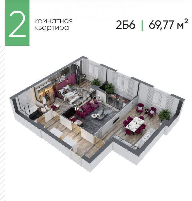 2-бөлм. бат., 69.77 м2